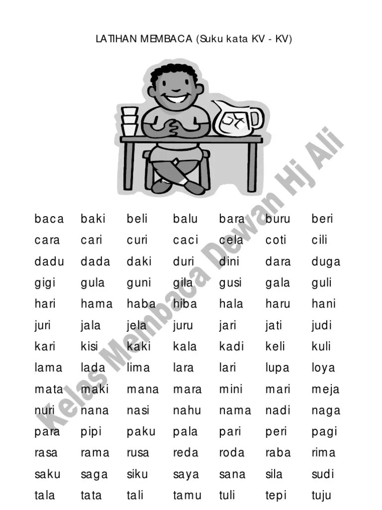 Carta suku kata kv | kids | pinterest | education, preschool. Carta suku kata kv alphabet activities kindergarten, preschool writing, preschool learning activities, preschool. Mencantumkan suku kata menjadi perkataan v + kv. Ba bi bu be bo ca ci cu ce co da di du de do fa fi fu fe fo ga gi gu ge go ha hi hu he ho ja ji ju je jo ka ki ku ke ko la li lu le lo ma mi .